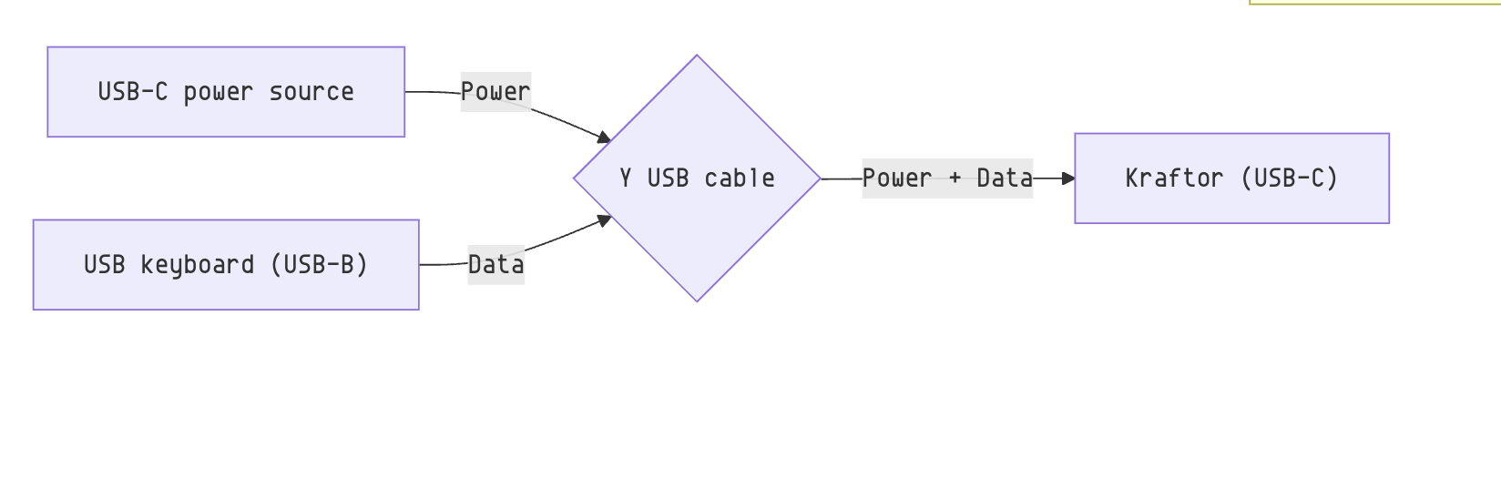 Use it with Kraftor: connect the USB nano receiver to the Y USB cable and use the USB input of the Y cable to power both Kraftor and the keyboard
